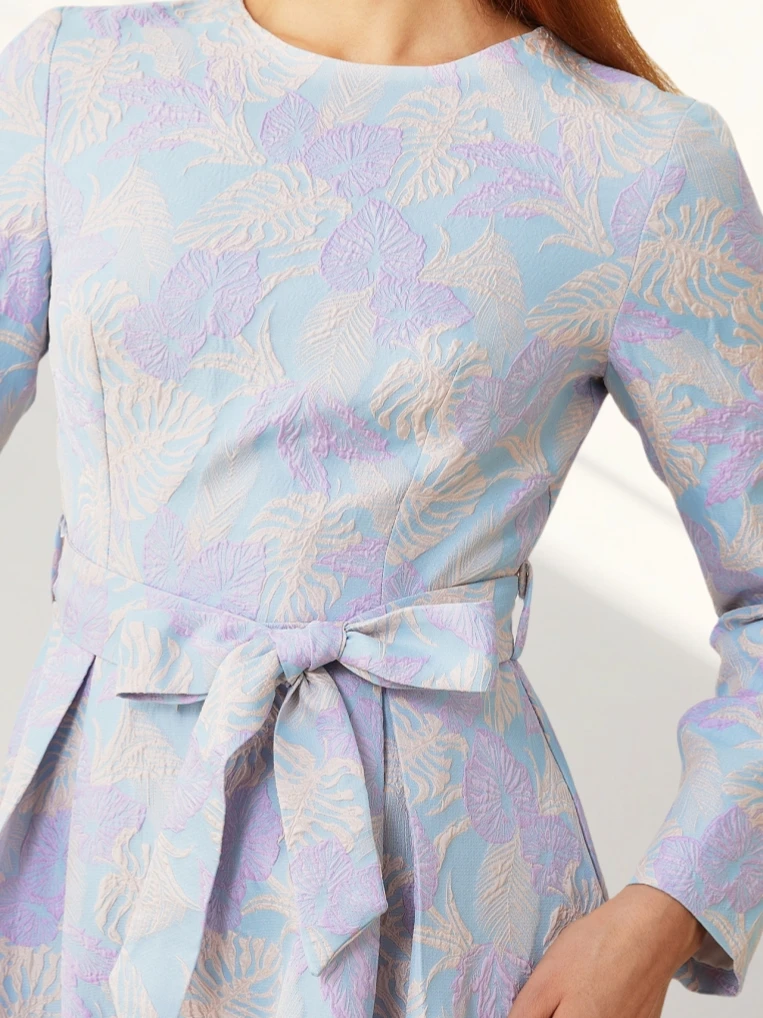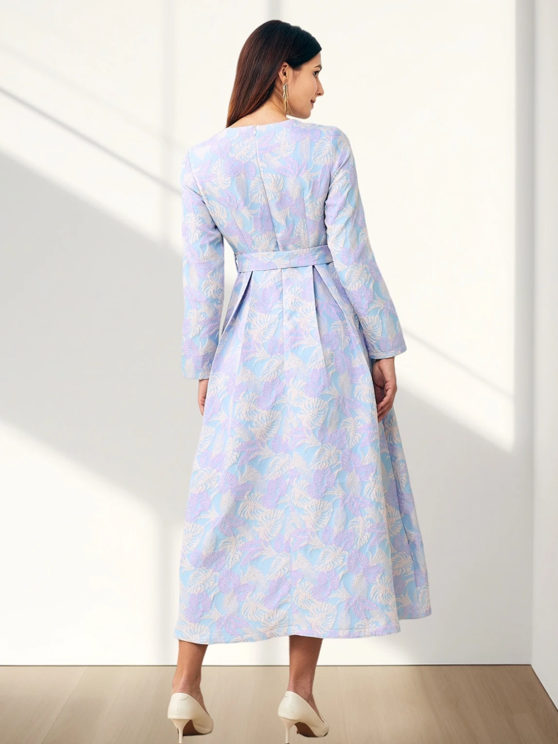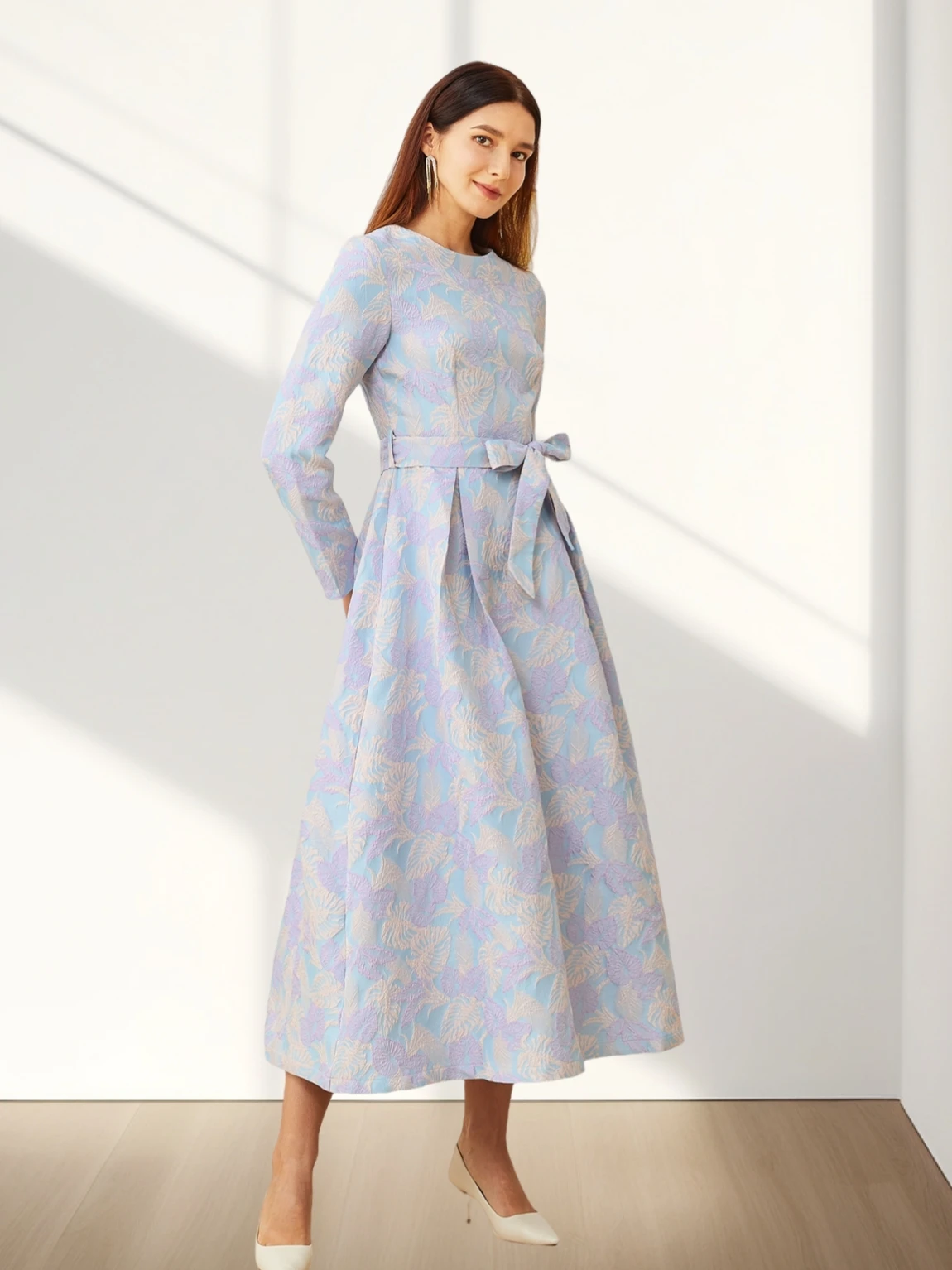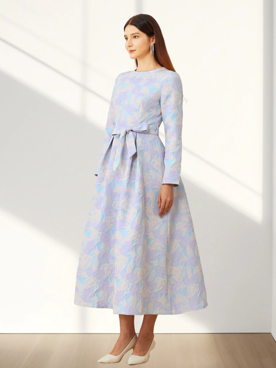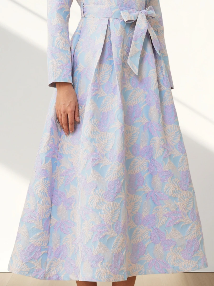 Luxurious and elegant heavy industry three-dimensional embossed jacquard light purple cinched waist tie court dress