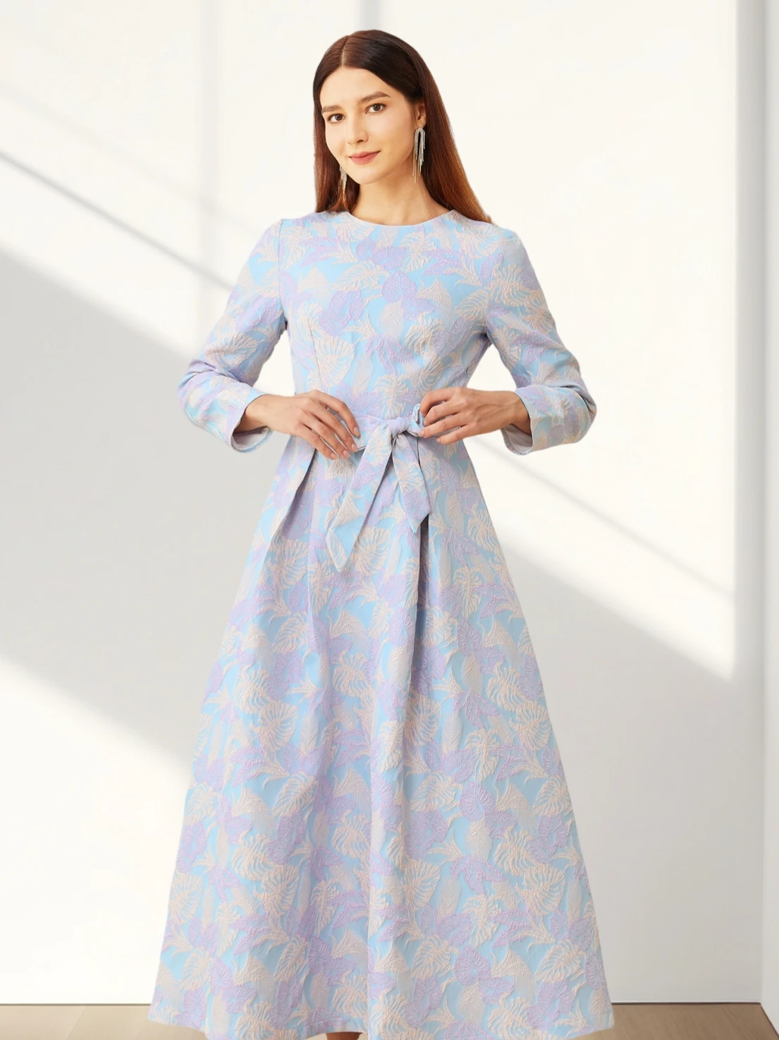 Hign-concerned Chemical:None Craft of Weaving:Tat Release Date:Autumn 2025 Closure Type:Zipper Profile Type:A Fabric Type:POLYESTER Type:Regular Age:Middle Age Place Of Origin:China (mainland) Model Number:6731 Season:All Season Neckline:O-Neck Waistline:Natural Sleeve Style:Regular Dresses Length:Mid-Calf Decoration:Lace-Up Sleeve Length(cm):Full Pattern Type:Floral Silhouette:Loose Style:French style Material:POLYESTER Gender:Women Origin:Mainland China Brand Name:DEVCHATA Elasticity:Non Strech Fit Type:Loose CN:Guangxi