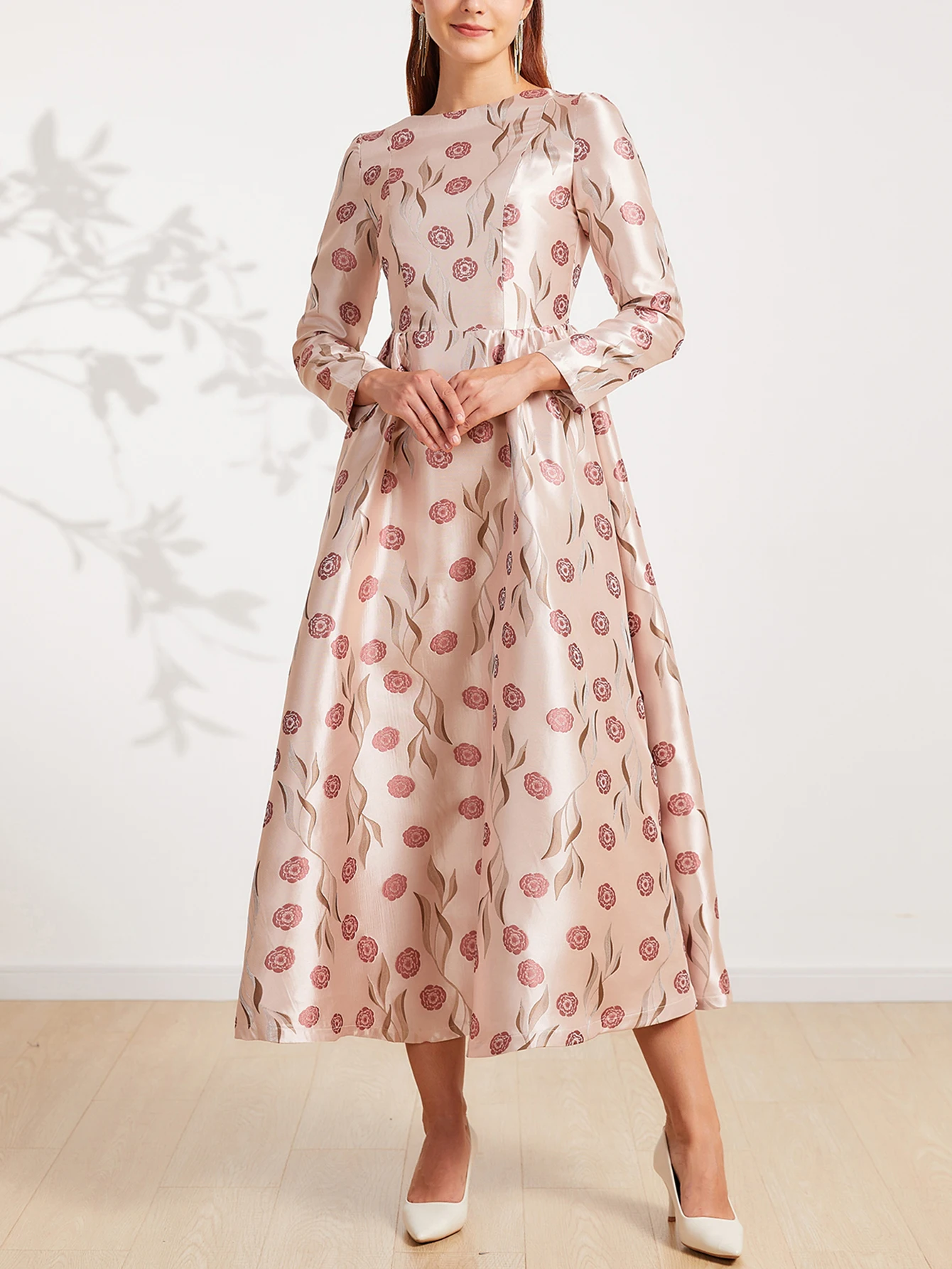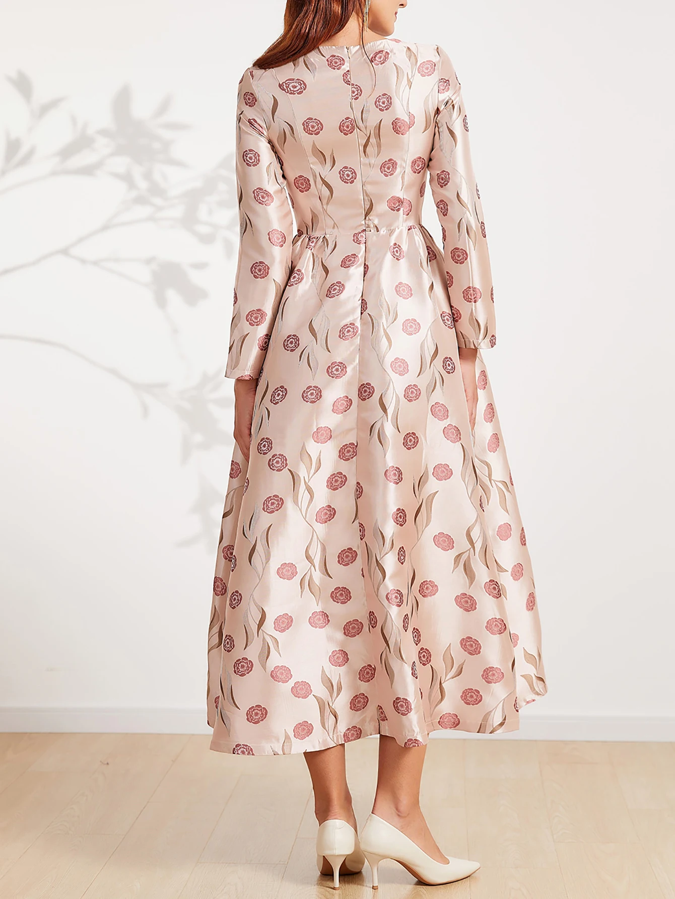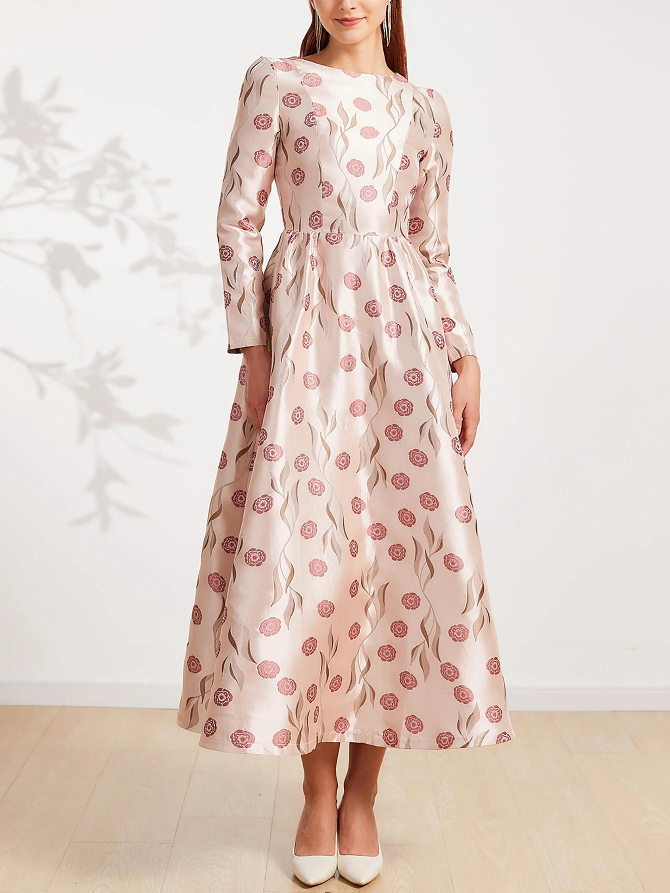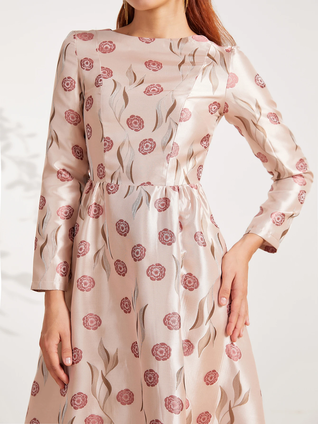 Women Autumn Dress Retro Boho Jacquard Long Sleeve Gorgeous Floral Party Dress
