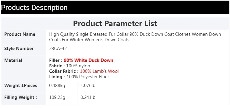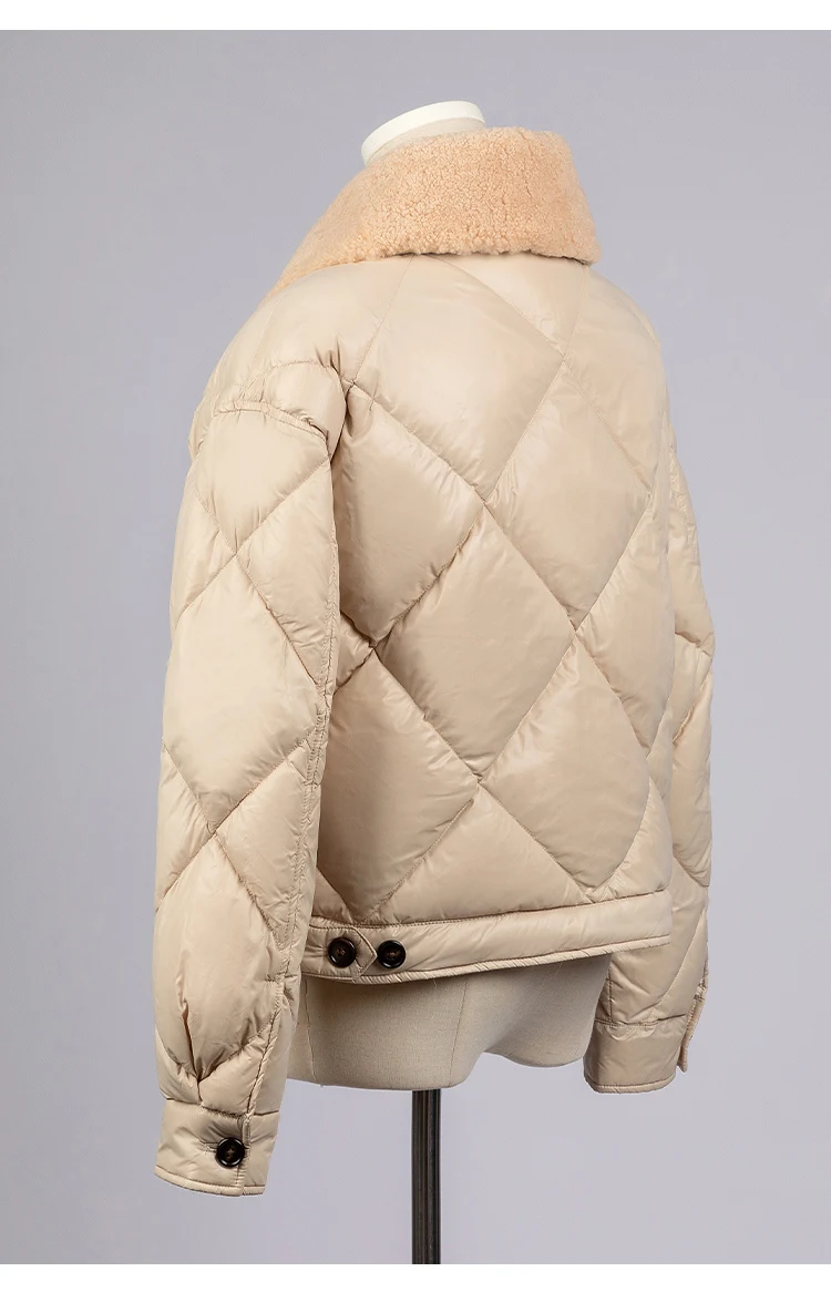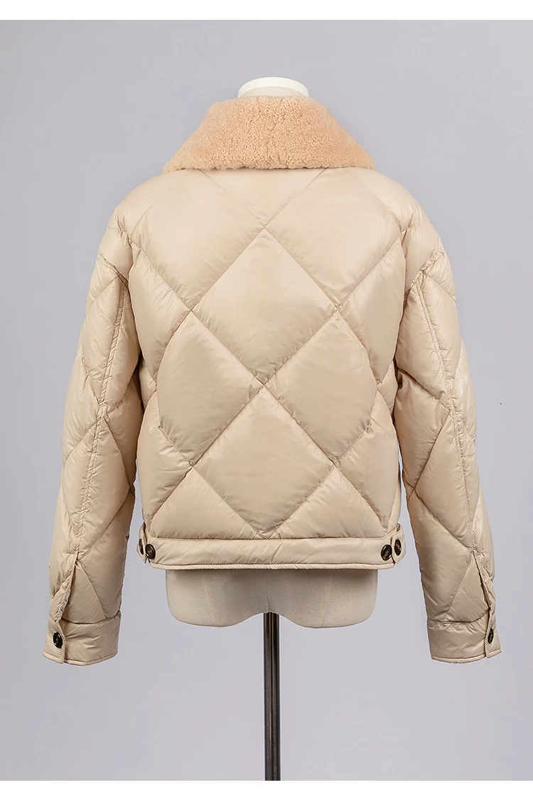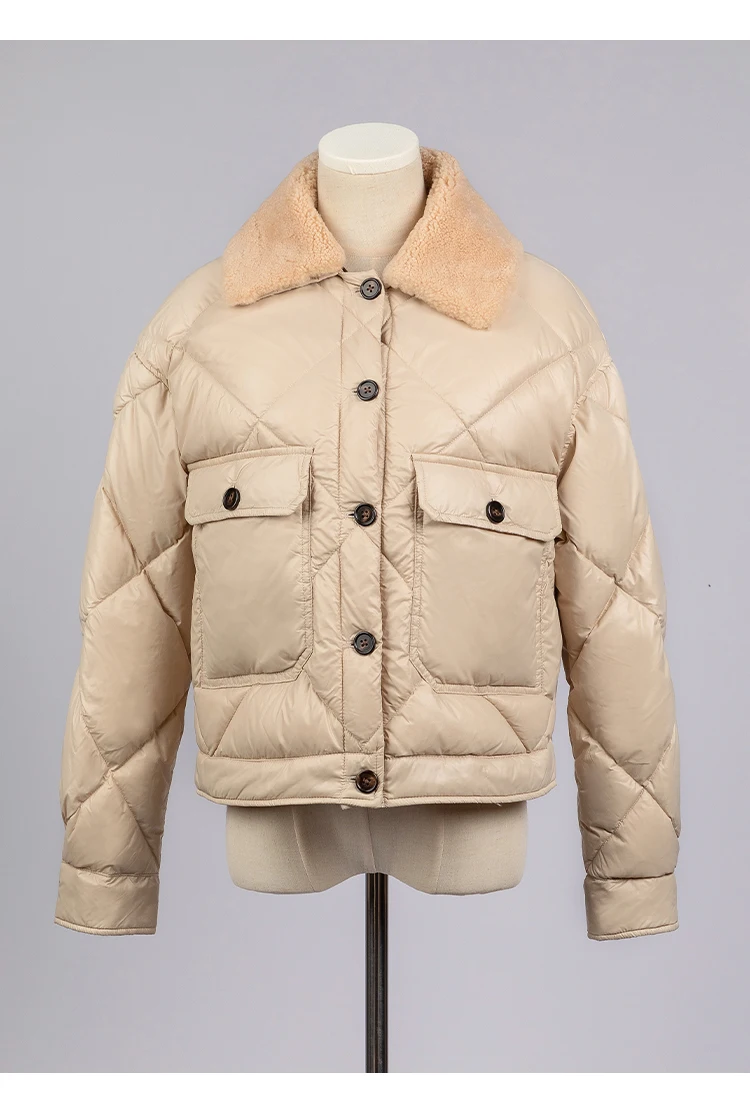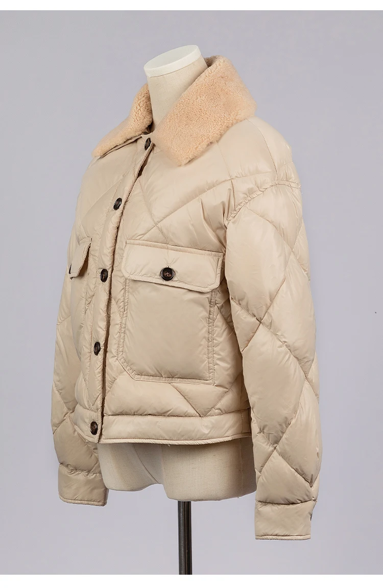 whether full opening:Yes Hign-concerned Chemical:None Craft of Weaving:Tat Release Date:Autumn 2024 Season:Autumn/Winter Age:Middle Age Place Of Origin:China (mainland) Decoration:Button,Fur,Pockets,Zippers,Chains Model Number:23CA-42 Weight:0.488g Style:Casual Down Weight:100g-150g Detachable Part:Collar Detachable Hooded:No Material:Nylon Down Content:90% Filling:White duck down Sleeve Length(cm):Full Thickness:Thick Type:Regular Closure Type:Zipper Pattern Type:Solid Clothing Length:Regular Gender:Women Origin:Mainland China Brand Name:Serathinan CN:Guangdong leather and fur:100% lamb wool
