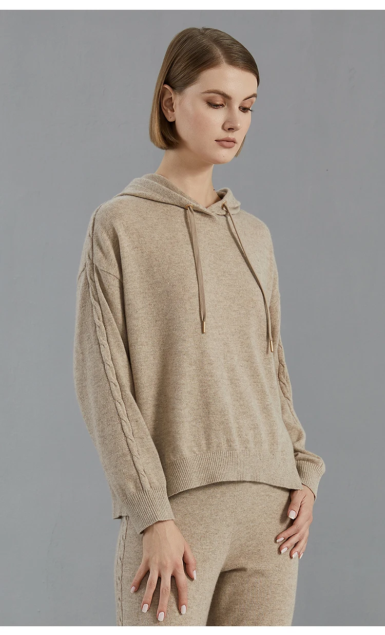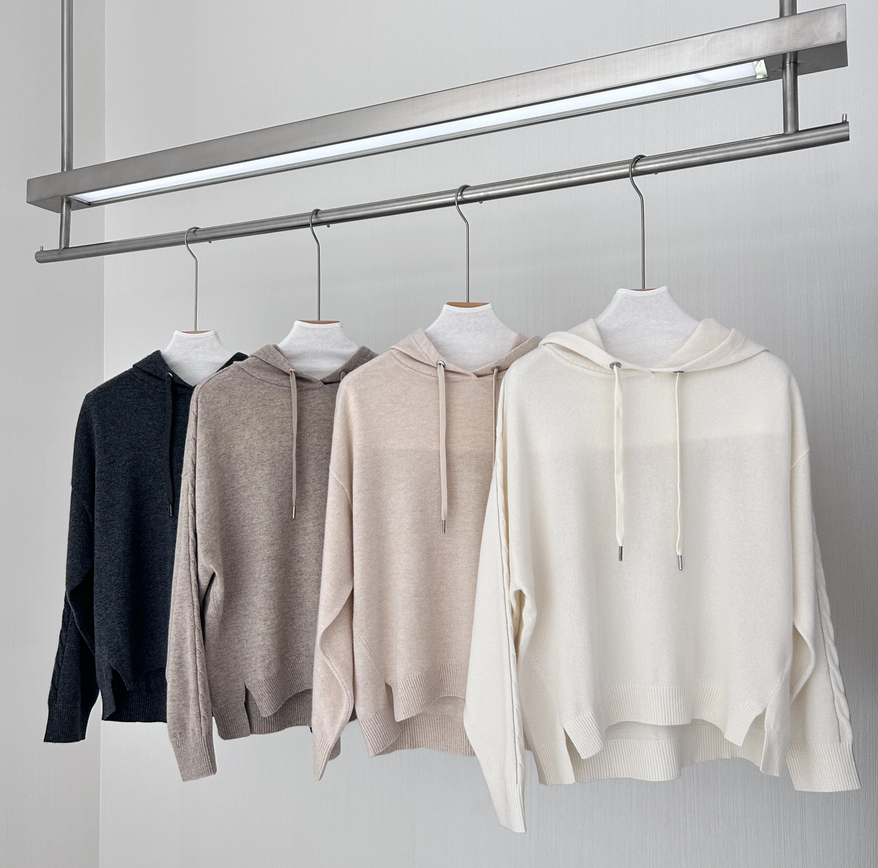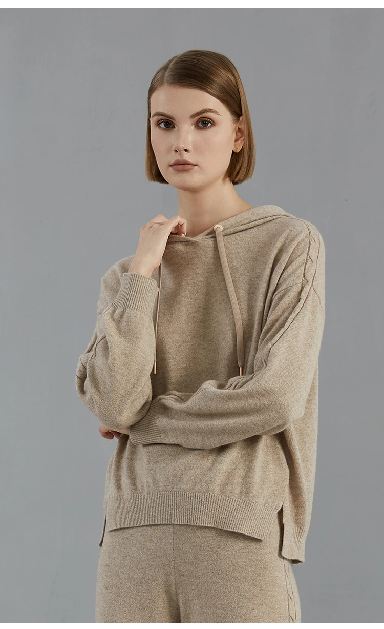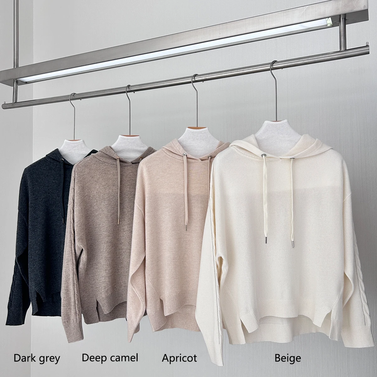 whether full opening:No Hign-concerned Chemical:None Release Date:Winter 2024 Craft of Weaving:Knit Pattern:Loose-fitting Percentage of Material:95% above Season:Autumn/Winter Age:35-45 Years Model Number:BC828 Place Of Origin:China (mainland) Pattern Type:Solid Gender:Women Sleeve Length(cm):Full Style:Casual Decoration:None Material:Cashmere Sleeve Style:Regular Collar:Hooded Clothing Length:Regular Material Composition:100% CASHMERE Brand Name:Serathinan Closure Type:Pullover Elasticity:Medium Strecth Fit Type:Loose Origin:Mainland China CN:Guangdong