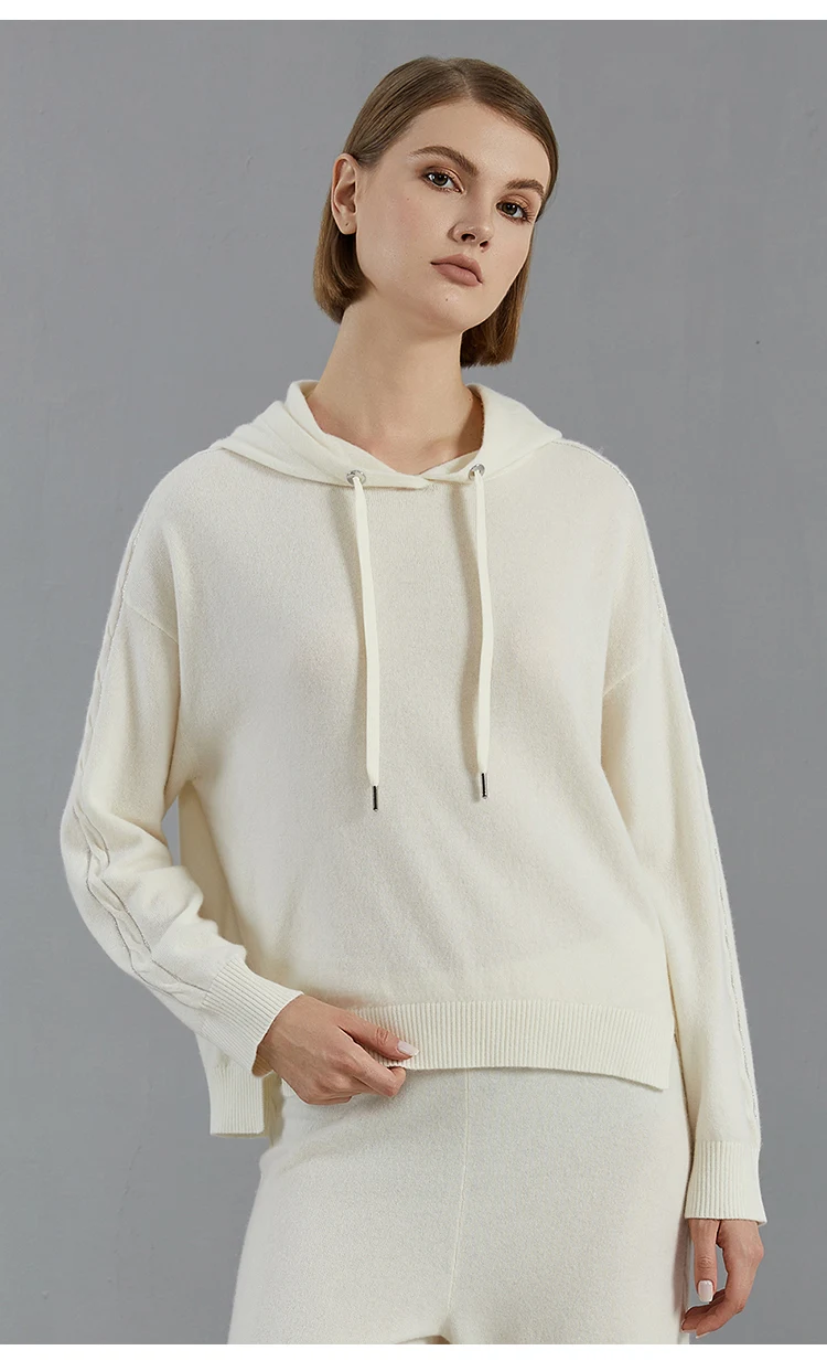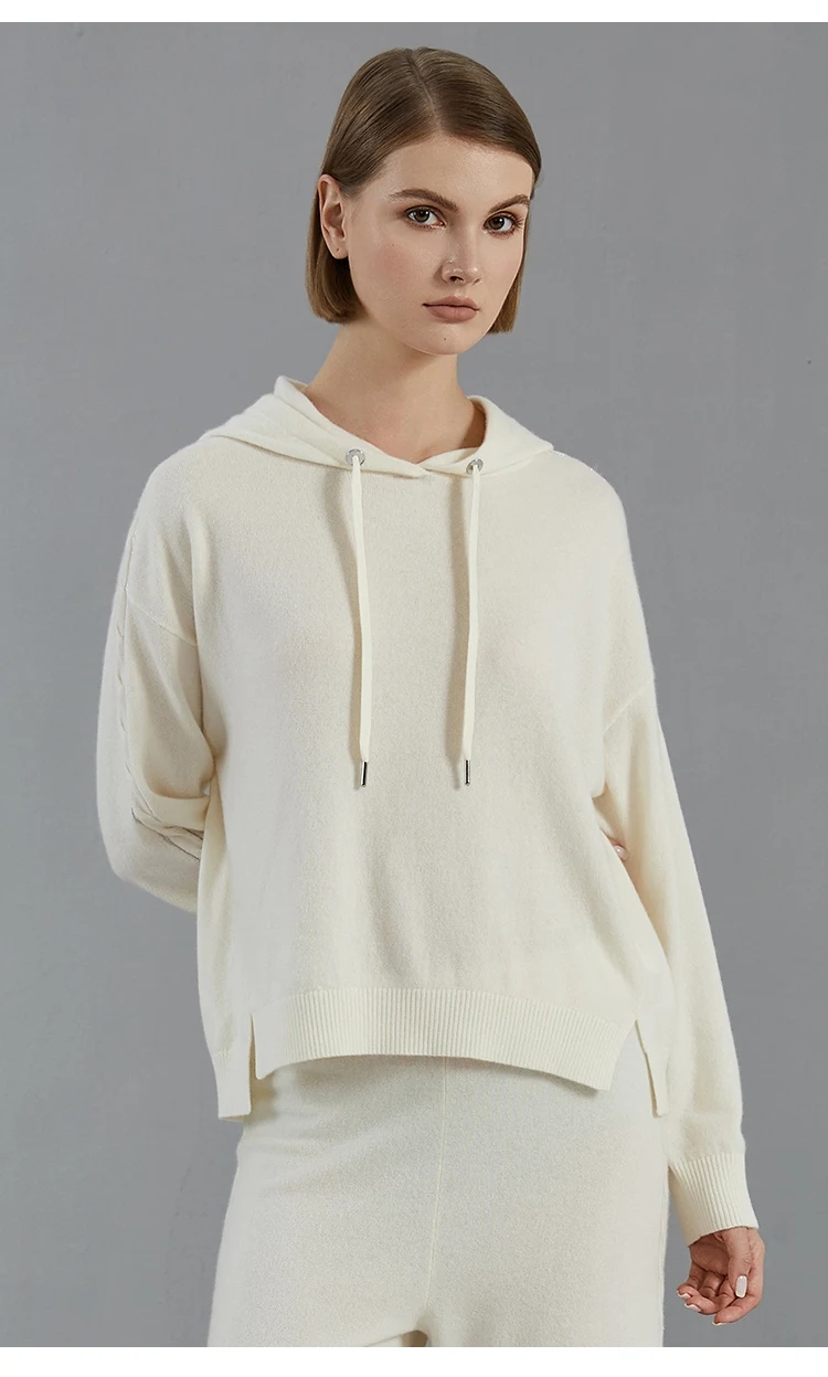 Women's Clothing 100% Cashmere Pullover Knitted Hooded Sweater